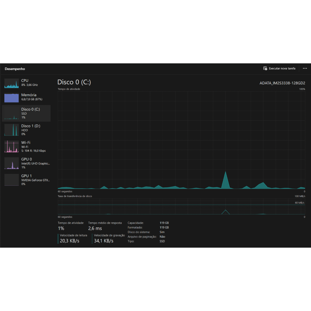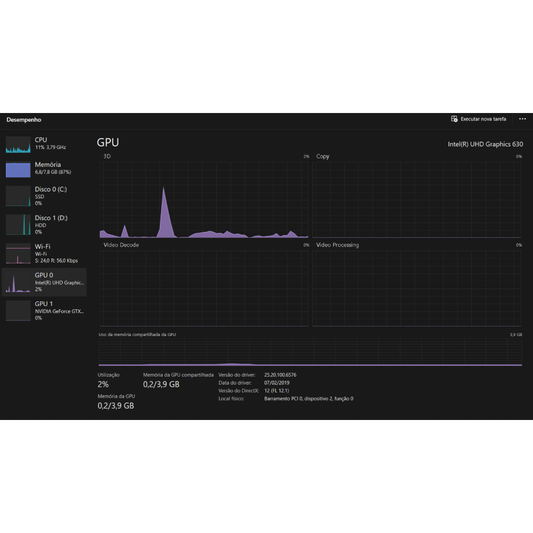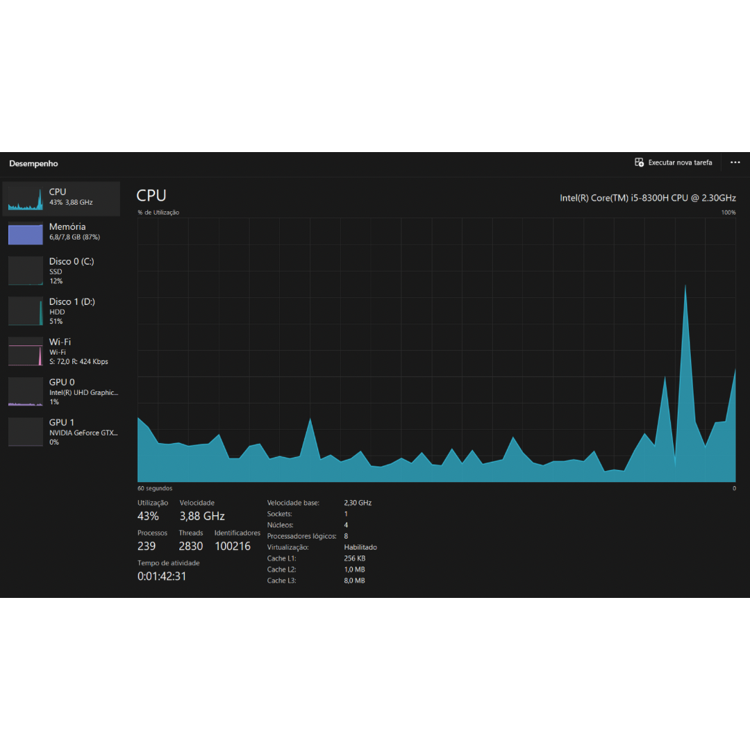 - Intel(R) Core(TM) i5-8300H CPU @ 2.30GHz 2.30 GHz com função Turbo Boost