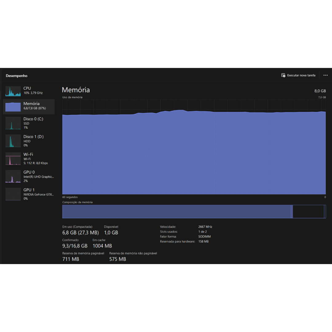 *Expansível até 32 GB (2 slots para memórias soDIMM de até 2.667 MHz)