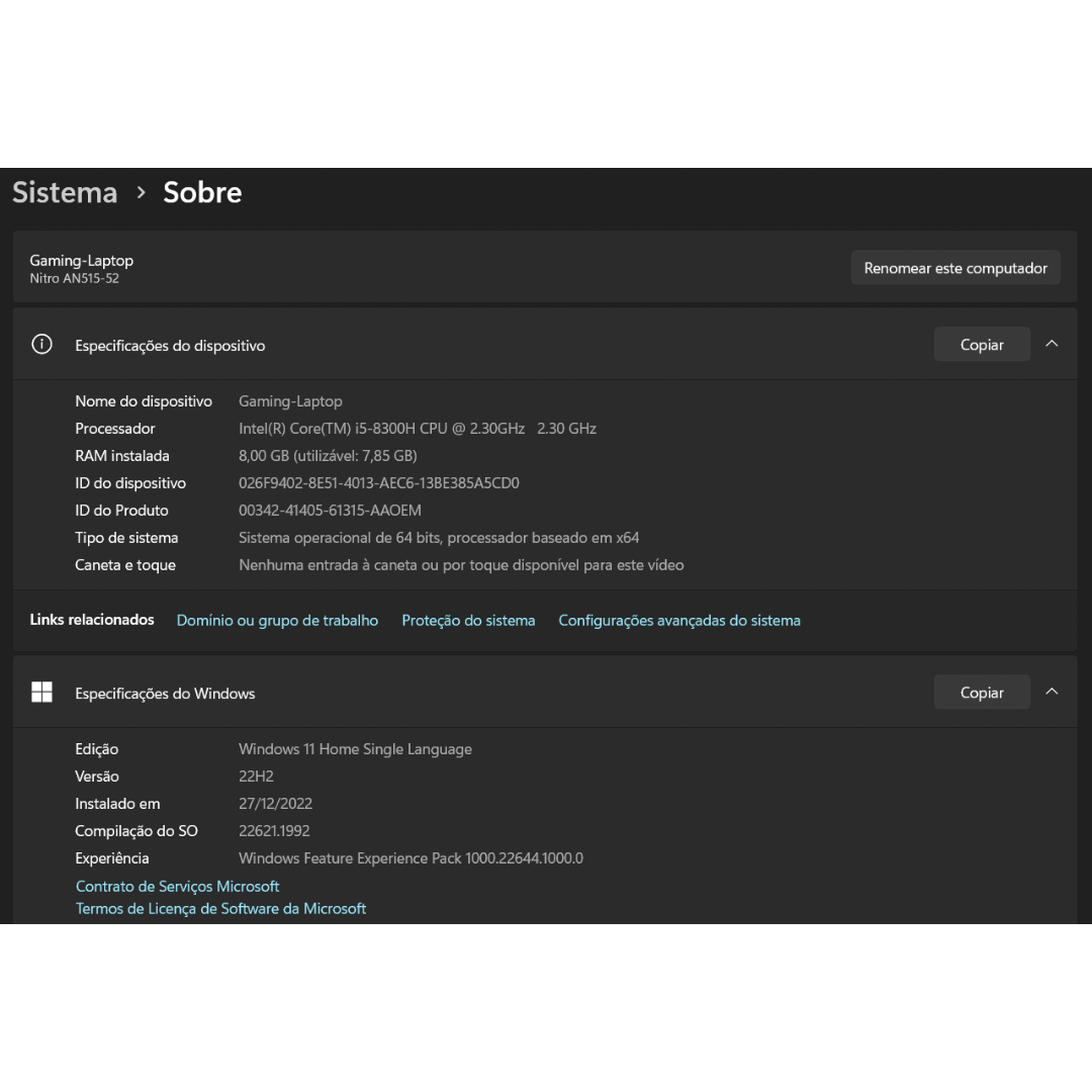 Sistema Operacional: Windows 10