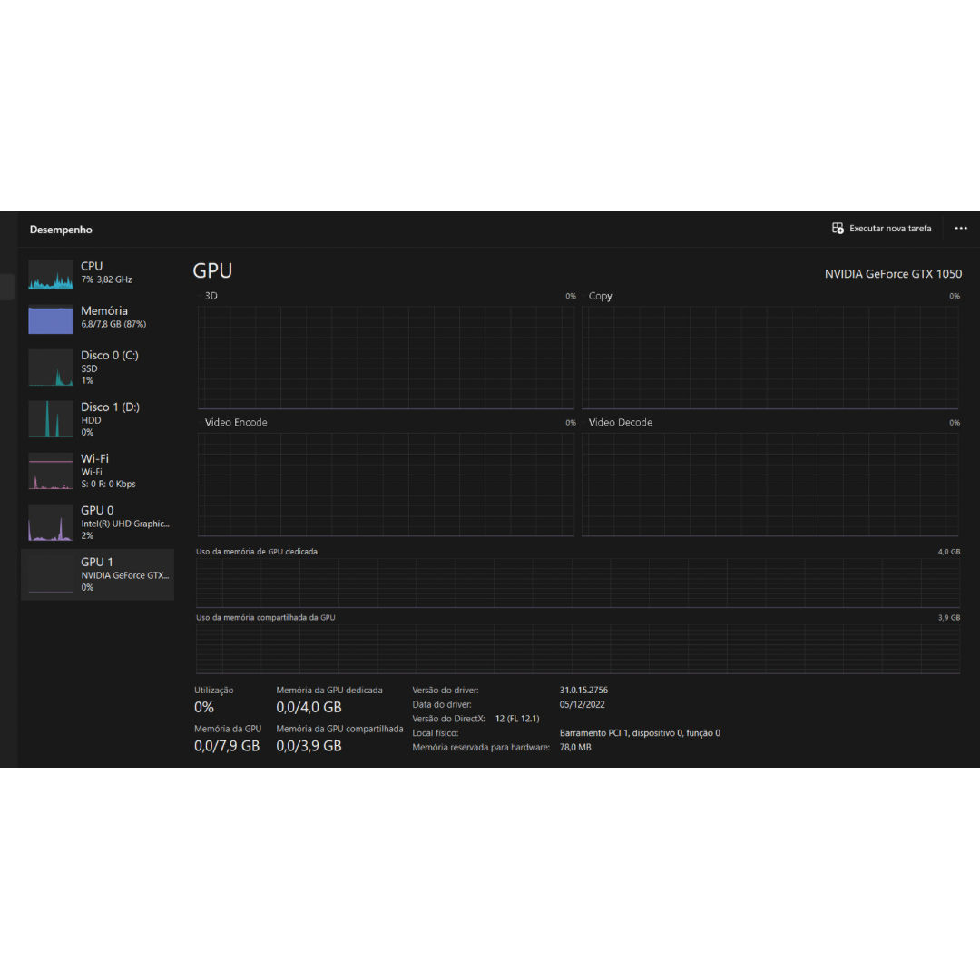 - NVIDIA® GeForce® GTX 1050 com 4GB - GDDR5